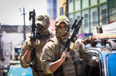 As forças de segurança do Acre desfilaram com seus veículos motorizados na Rua Benjamin Constant, em Rio Branco, durante o desfile cívico-militar deste domingo (7).