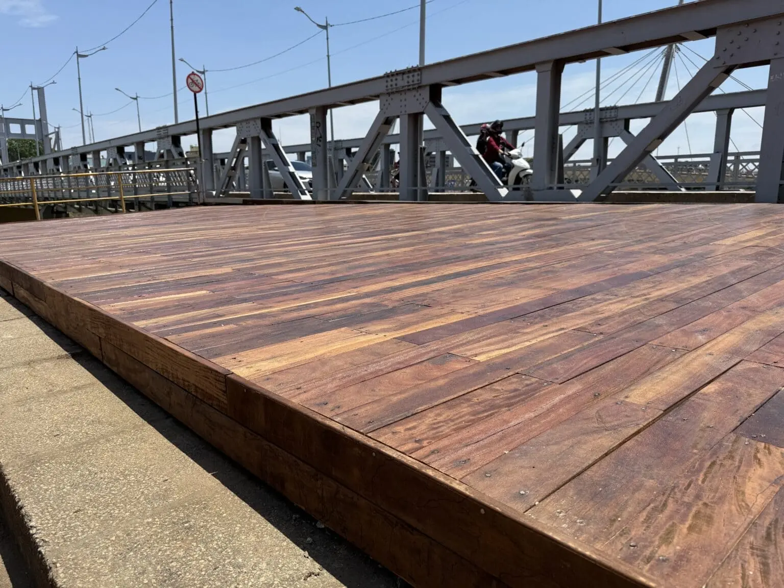 Os trabalhos incluíram a substituição completa das tábuas de madeira, recuperação dos guarda-corpos e reparos no piso inferior.