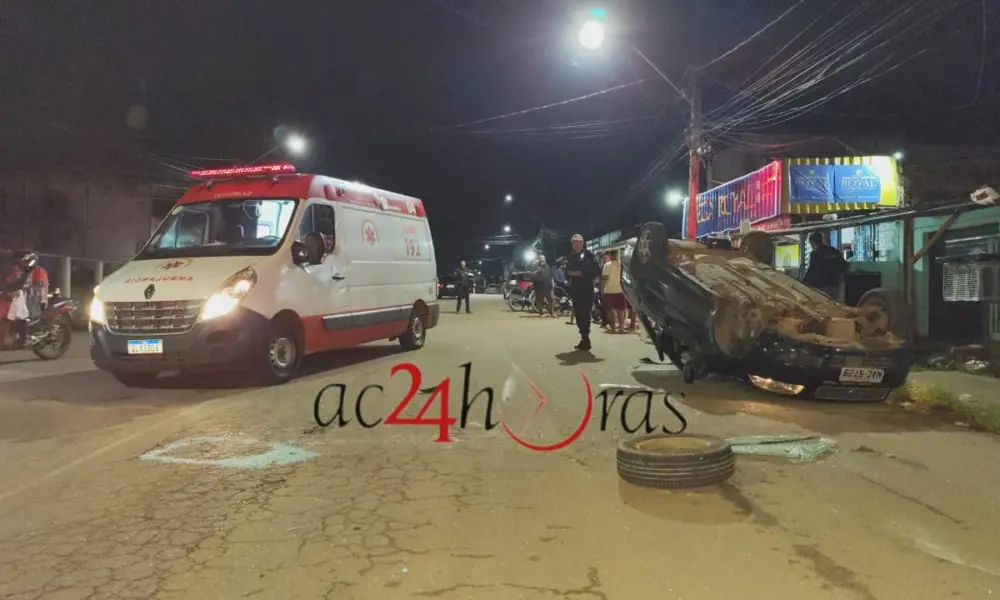Uma colisão entre veículos resultou no capotamento de um carro e deixou a passageira Maria Sebastiana de Souza Nascimento, de 20 anos, ferida na noite desta sexta-feira (3), na Estrada das Placas, no bairro Raimundo Melo, em Rio Branco.