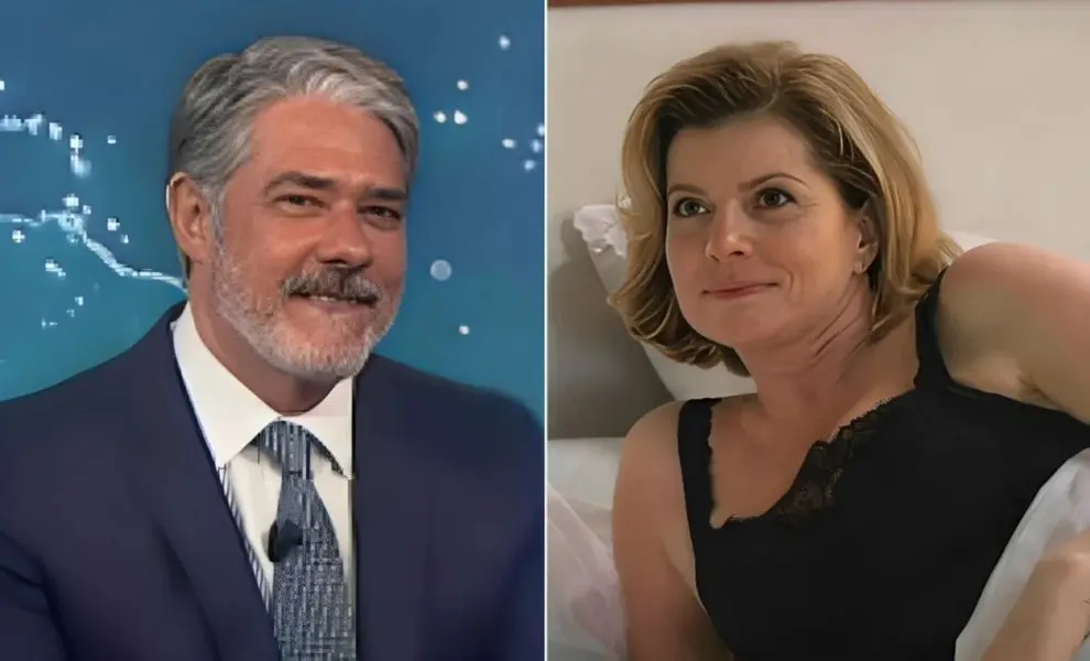 William Bonner no Jornal Nacional e Odete (Debora Bloch) em Vale Tudo: força-tarefa por ibope - Foto: REPRODUÇÃO/TV GLOBO
