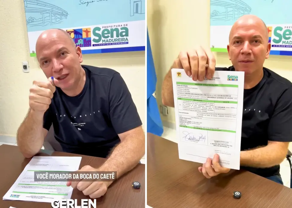 O prefeito de Sena Madureira, Gerlen Diniz (PP), assinou nesta terça-feira (7) a ordem de serviço para o início de novas obras de pavimentação de ruas no município, localizado no interior do Acre.
