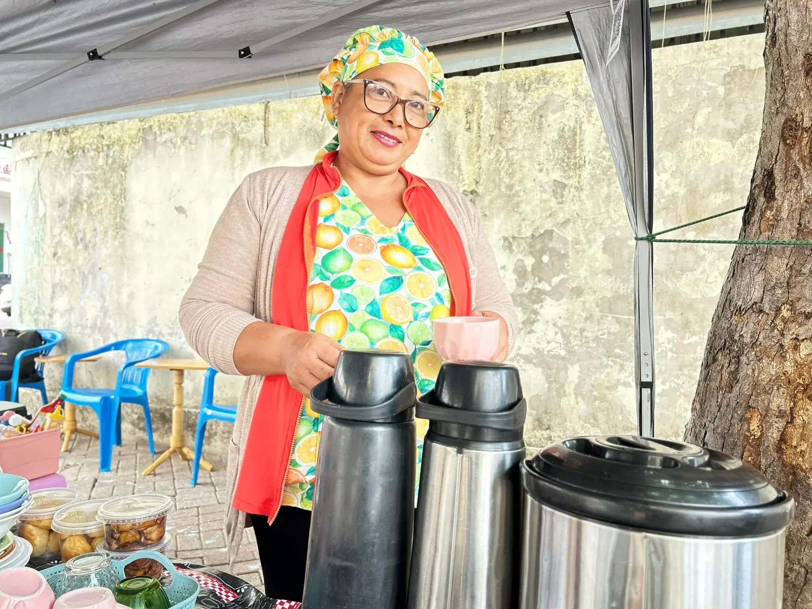 “Eu comecei trabalhando com a cunhada minha, aí trabalhei uns oito vezes com ela, aí ela desistiu e passou para mim e eu dei continuidade. Estou aqui faz uns dois anos. Só que o cafezinho ele já vem, ele é tradicional, já tem muitos anos aqui, há mais de 10 anos nesse pontinho aqui, só que vai mudando de dono, né, de pessoa que monta barraca aqui, aí vai mudando, vai trocando sempre porque acho que é muito cansativo”, pontuou.