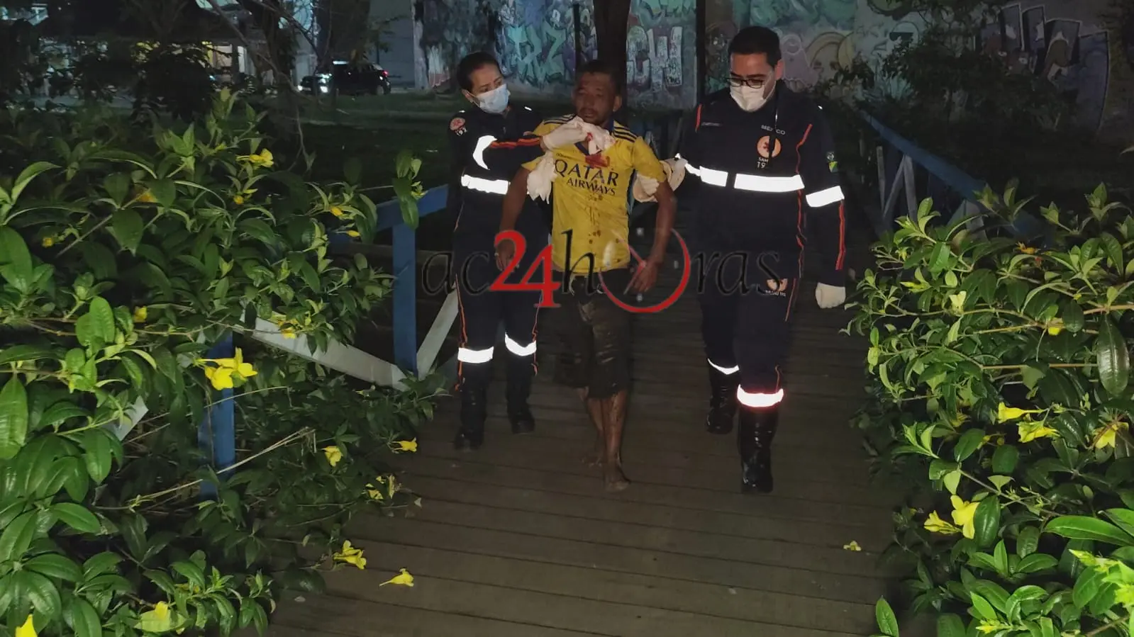 O Serviço de Atendimento Móvel de Urgência (SAMU) foi acionado e uma ambulância de suporte avançado foi enviada ao local. Os paramédicos prestaram os primeiros atendimentos e encaminharam Cleudo ao pronto-socorro de Rio Branco.