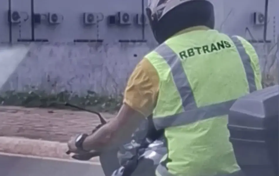 Um vídeo que passou a circular em grupos de redes sociais em Rio Branco, nesta segunda-feira (13) mostra um homem vestido com um colete da Superintendência de Transporte e Trânsito de Rio Branco – RBTrans, andando em uma moto sem um dos retrovisores.