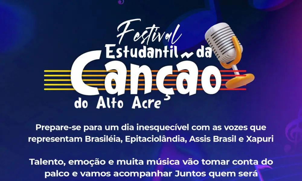Na Escola Luiz Gonzaga da Rocha, em Epitaciolândia, nesta sexta-feira (17), acontece a Grande Final do I Festival Estudantil da Canção do Alto Acre, evento que celebra o talento e a criatividade dos estudantes das escolas públicas de Brasiléia, Epitaciolândia, Xapuri e Assis Brasil.