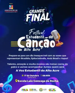 Na Escola Luiz Gonzaga da Rocha, em Epitaciolândia, nesta sexta-feira (17), acontece a Grande Final do I Festival Estudantil da Canção do Alto Acre, evento