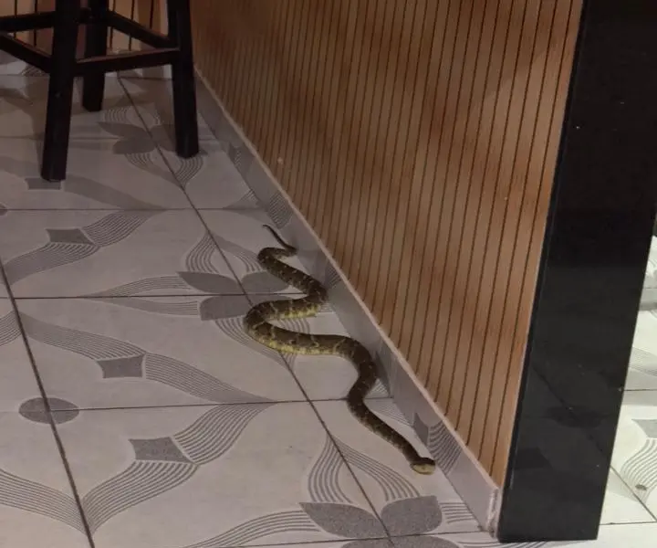 Surucucu é resgatada em cozinha de casa no interior do Acre