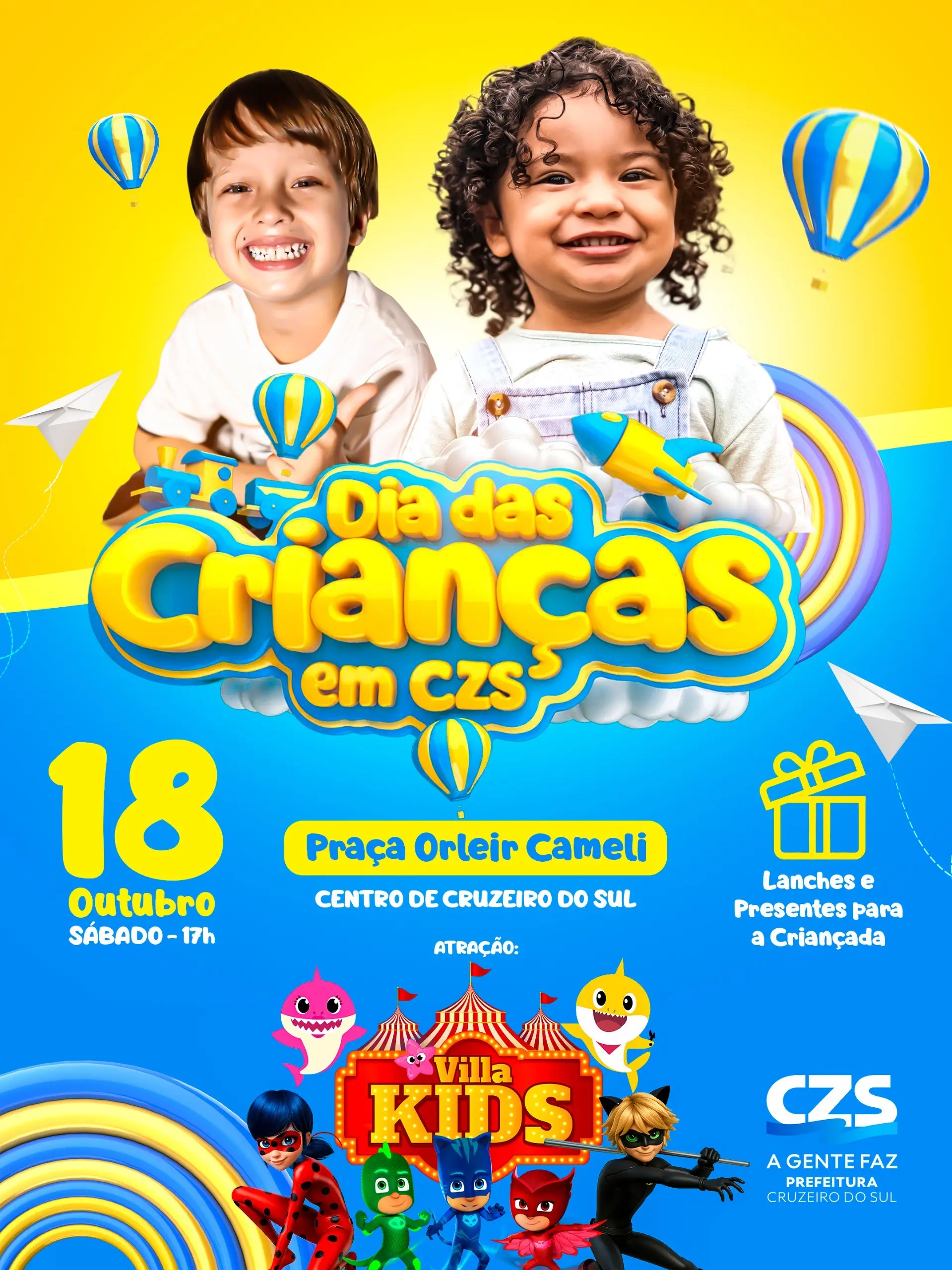 A atração principal será a turma do Villa Kids. O evento contará também com lanche, além de um DJ, garantindo diversão para os pequenos. A festa está programada para começar às 17h e se estender até às 19h30.