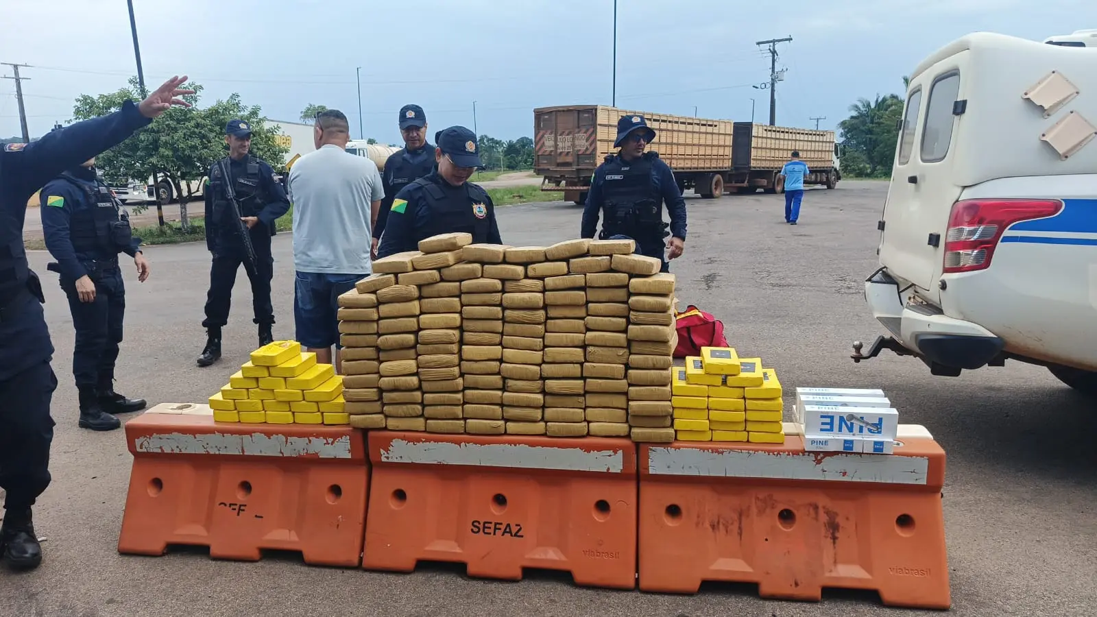 A abordagem ocorreu após informações repassadas pela Força Integrada de Combate ao Crime Organizado (FICCO). Os policiais interceptaram dois veículos que saíam do Acre em direção a Rondônia, e em um deles encontraram 105 quilos de skunk, 28 quilos de crack e 18 quilos de cloridrato de cocaína.