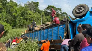 Um acidente envolvendo um caminhão boiadeiro deixou parte da carga de animais em risco próximo ao Distrito Industrial, na rota entre Bujari e Rio Branco.