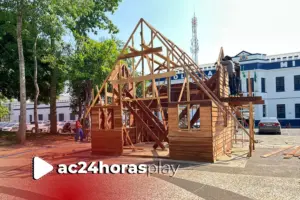 Os primeiros preparativos para o Natal já começaram na Praça da Revolução, em Rio Branco. A equipe da House Engenharia iniciou nesta quinta-feira, 23, a