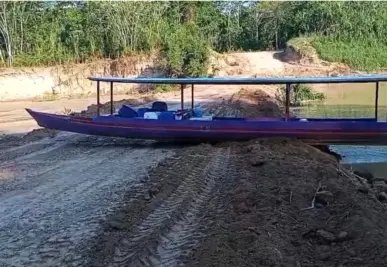 O bloqueio do curso do Rio Iaco, nas proximidades do Seringal Santa Clara, que teria sido causado por uma madeireira que estaria utilizando toras de
