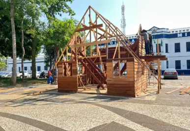 Os preparativos para o Natal na Praça da Revolução já estão em andamento. A tradicional casa do Papai Noel começou a ser montada e deve