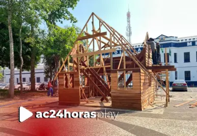Os primeiros preparativos para o Natal já começaram na Praça da Revolução, em Rio Branco. A equipe da House Engenharia iniciou nesta quinta-feira, 23, a