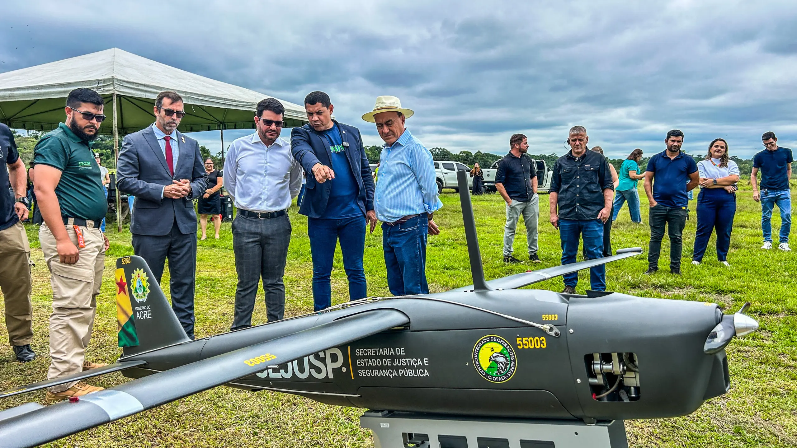 O secretário de Estado de Justiça e Segurança Pública, José Américo Gaia, enfatizou as aplicações estratégicas do VANT. “É uma aeronave que dispõe de câmeras termais, então a gente pode ver onde as pessoas nem imaginam que nós estamos vendo. Serve pra monitorar todos esses mais de dois mil quilômetros de fronteira que nós temos com os países Peru e Bolívia. Tecnologia de ponta, somos o primeiro Estado a adquirir isso. Esse equipamento vai cobrir a região de Rio Branco e o entorno, e o outro vai cobrir a região do Juruá e aquele entorno. Então, teremos cobertura 100%, cobertura aérea em todos os nossos quilômetros quadrados do estado do Acre”, prometeu.