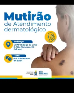 A população de Rio Branco poderá contar com atendimentos dermatológicos gratuitos nesta sexta-feira, 31, durante o mutirão promovido pela Prefeitura, por meio da Secretaria Municipal
