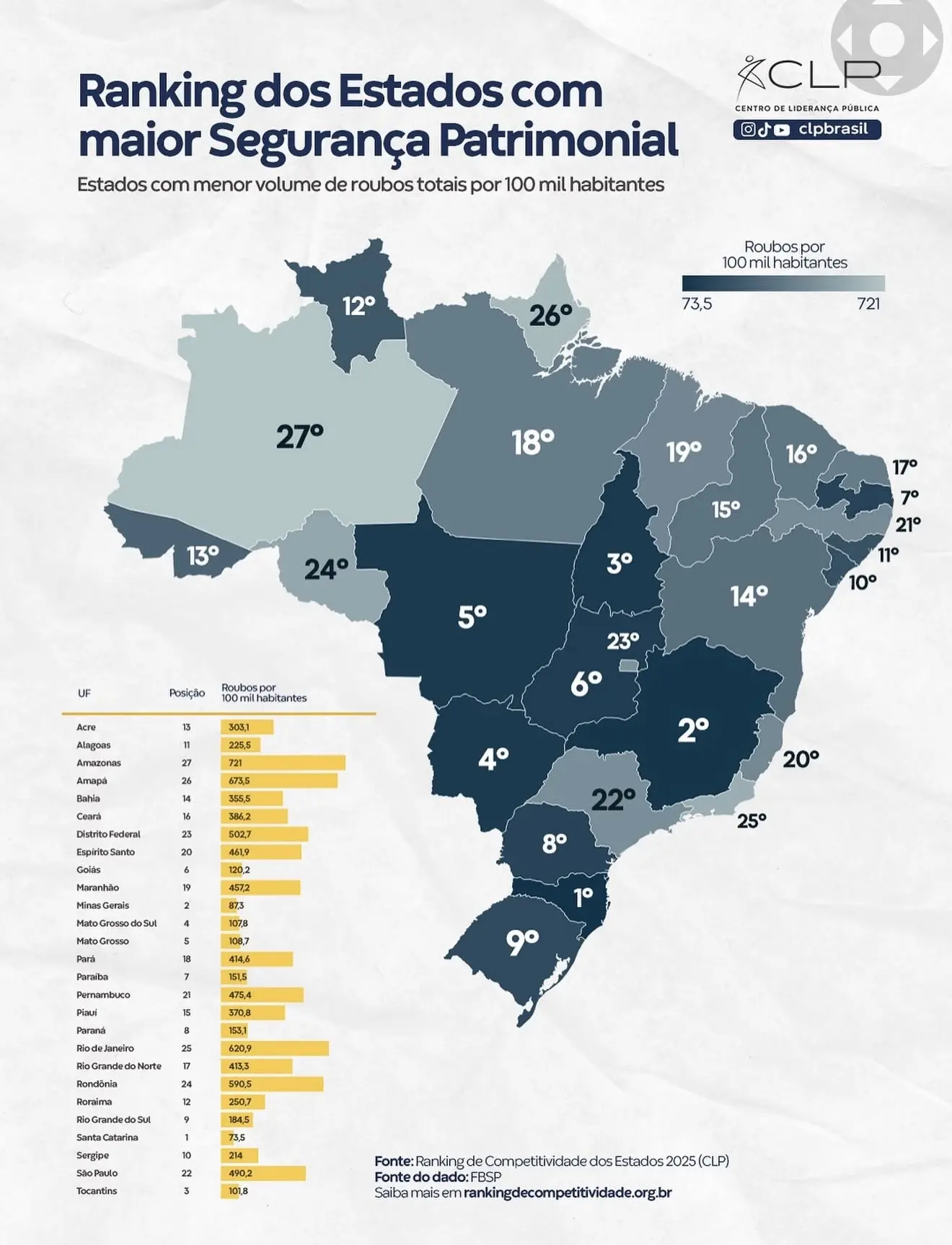 O indicador utilizado no ranking considera diferentes tipos de roubo previstos no artigo 157 do Código Penal. Os números totais podem variar conforme a metodologia e o detalhamento aplicado por cada estado no Anuário da Segurança Pública.