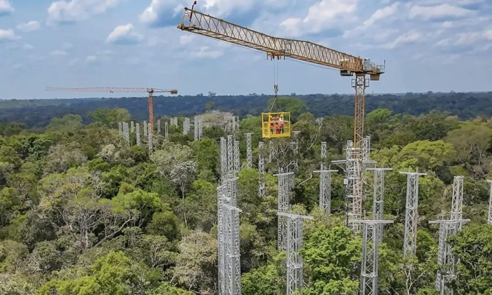 Financiado pelos governos do Brasil e do Reino Unido, com apoio do Banco Interamericano de Desenvolvimento (BID), o projeto é o primeiro do tipo em uma floresta tropical. Gruas de 50 metros permitem o acesso dos cientistas à copa das árvores, enquanto câmeras e drones acompanham alterações na temperatura, floração e fotossíntese.