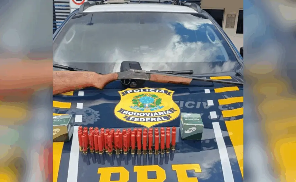 A equipe da PRF abordou o veículo e encontrou a arma, uma espingarda, cujo registro não estava em nome do homem que dirigia o veículo. O homem disse que a arma e a munição, pertencia ao pai dele.