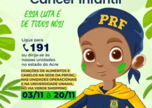 A Polícia Rodoviária Federal (PRF) no Acre lançou mais uma edição da campanha “Policiais Contra o Câncer Infantil”, uma mobilização nacional que tem como objetivo
