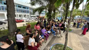 Trabalhadores da educação municipal de Rio Branco realizaram uma paralisação parcial em escolas da capital acreana nesta segunda-feira (3), culminando em uma manifestação em frente