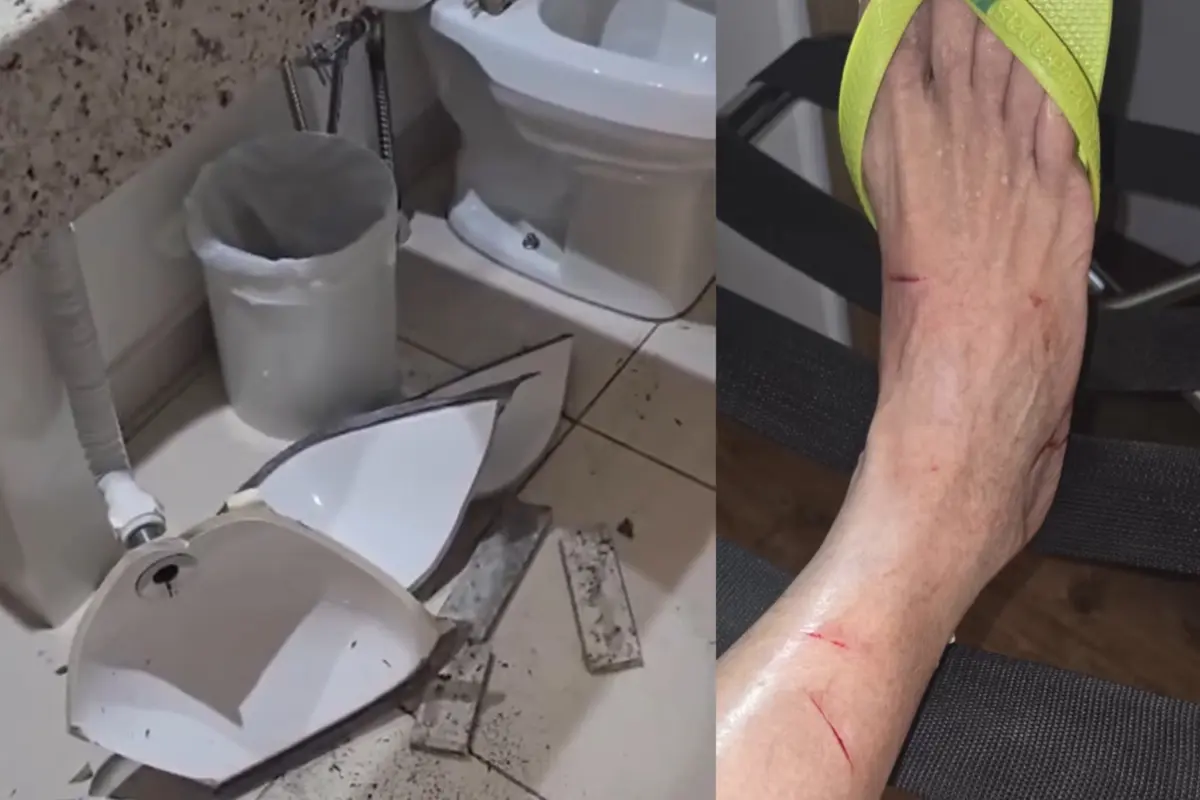 “Ao ir ao banheiro, percebi que a pia estava com problema de escoamento. Quando liguei a torneira, ela encheu de água, e logo em seguida a cuba simplesmente se soltou e caiu, cortando meu pé. Graças a Deus, nada grave aconteceu, mas poderia ter sido muito pior, já que o material é extremamente cortante”, escreveu Tião Bocalom. Fotos mostram cortes na perna do prefeito.