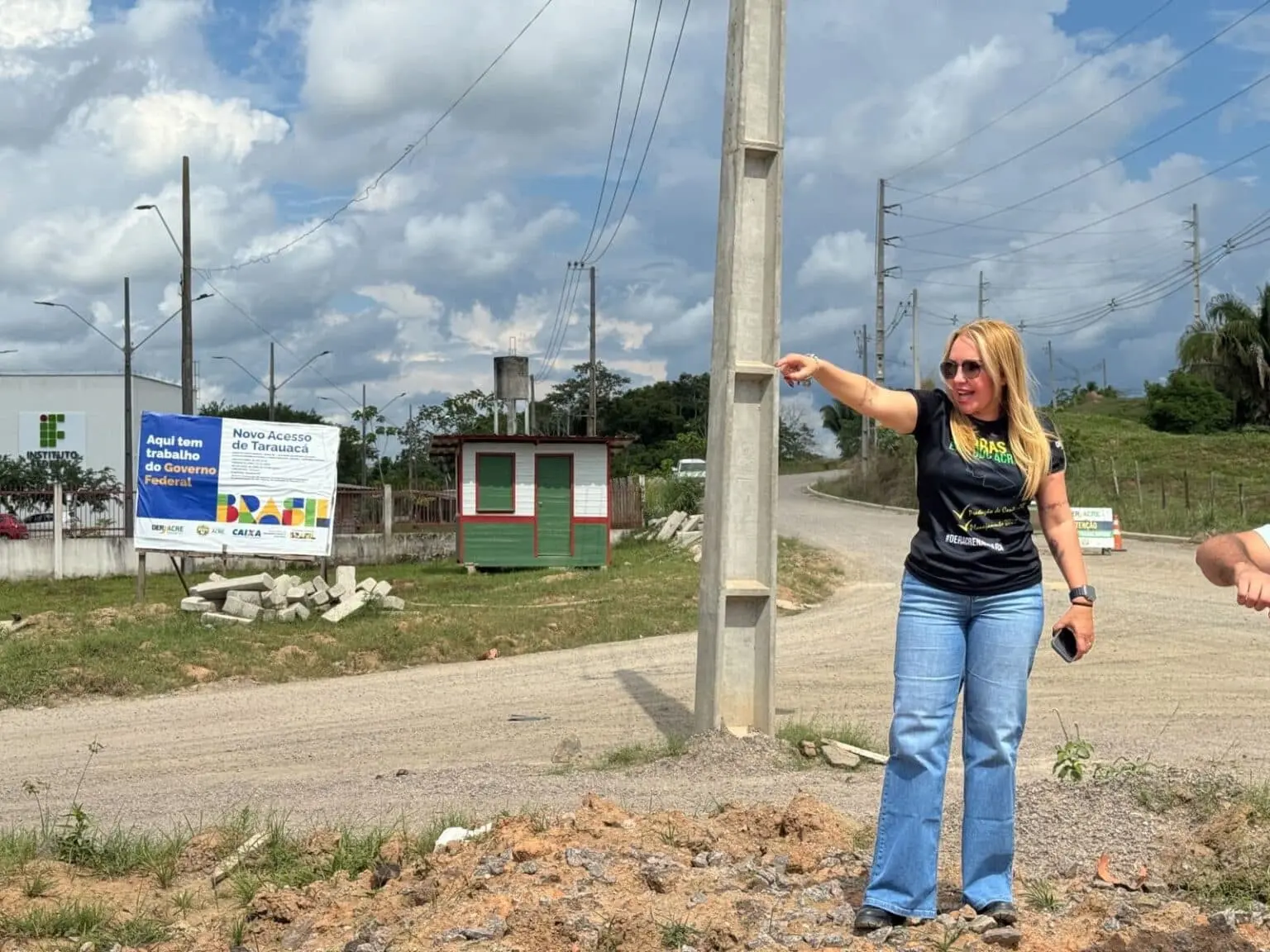Presidente do Deracre, Sula Ximenes, acompanha de perto obra do novo acesso de Tarauacá. Foto: Luy Andriel/Deracre