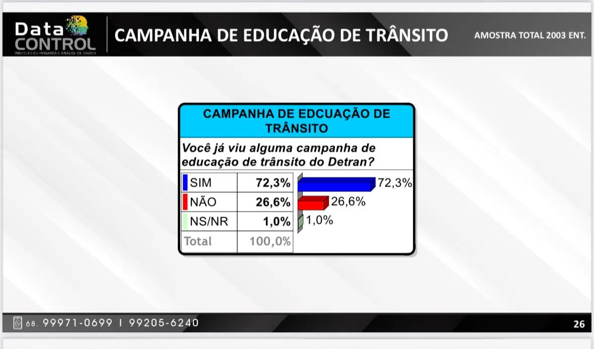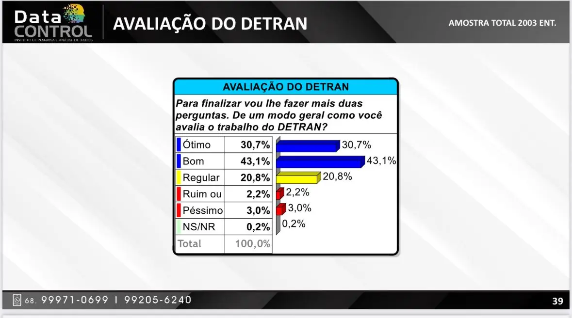 Pesquisa Data Control aborda percepção popular sobre o Detran/AC (FOTO: Reprodução)
