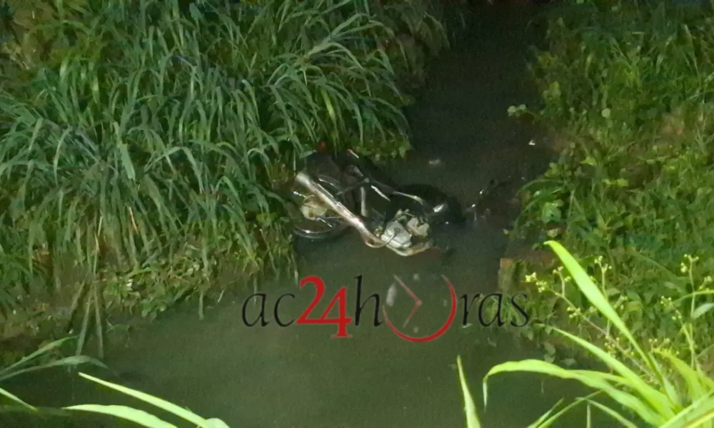 O motociclista Miguel Tomas da Silva Filho, de 19 anos, caiu dentro de um esgoto após colidir sua motocicleta na traseira de outra conduzida por Amanda Vitória Alves de Oliveira, de 24 anos, na noite deste sábado (8), na Rua José Magalhães, no bairro Conquista, em Rio Branco.