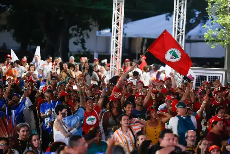 Antes da abertura, centenas de pessoas desfilaram com bandeiras em defesa das águas, contra a exploração das mineradoras e os combustíveis fósseis. Bandeiras de movimentos ribeirinhos, sem-terra, quilombolas, de quebradeiras de coco, atingidos por barragens, de pessoas com deficiência e mulheres percorreram os espaços da universidade mostrando a diversidade de participações. Bandeiras palestinas também tremulavam por todos os cantos, ecoando gritos de “Palestina livre”.