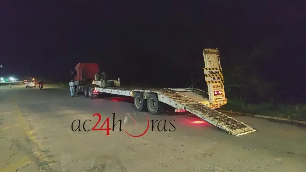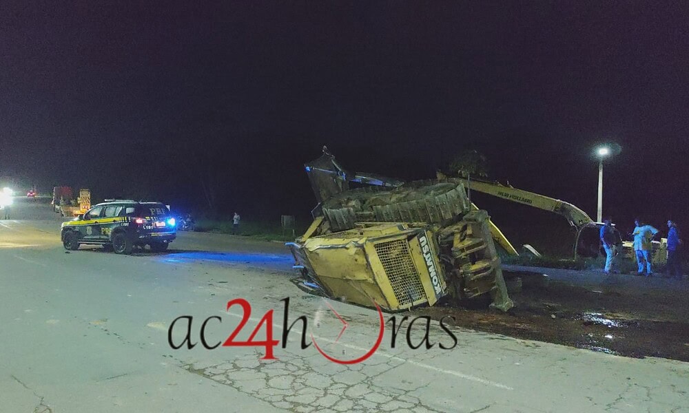 Um trator de esteira caiu de uma carreta prancha e deixou a BR-364 parcialmente interditada na noite desta quarta-feira (12). O acidente ocorreu na Via Verde, nas proximidades da 3ª Ponte, em Rio Branco.