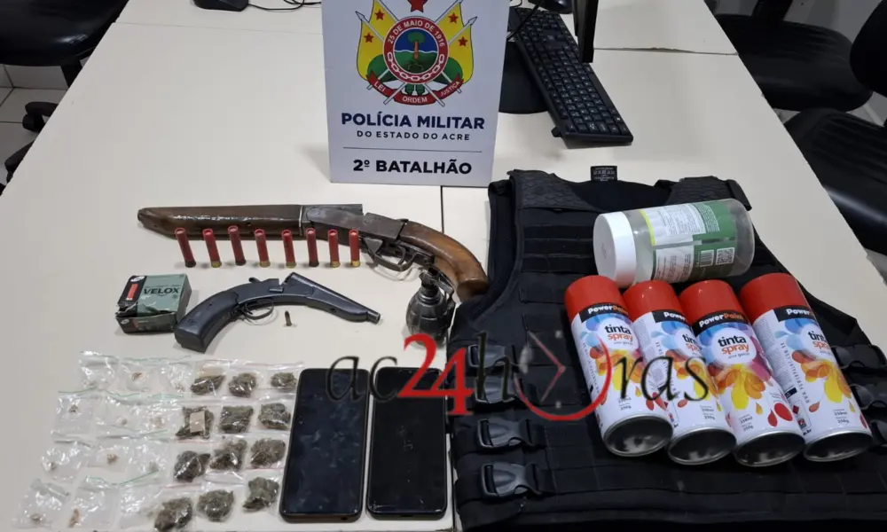 Caio Oliveira de Lima, de 33 anos, e Wesley de Souza Mariano, de 23 anos, foram presos pela Força Tática do 2º Batalhão da Polícia Militar na tarde desta sexta-feira (14) durante uma ação preventiva no bairro Taquari, no Segundo Distrito de Rio Branco. A abordagem ocorreu enquanto a equipe realizava patrulhamento pela Travessa Vasco da Gama.