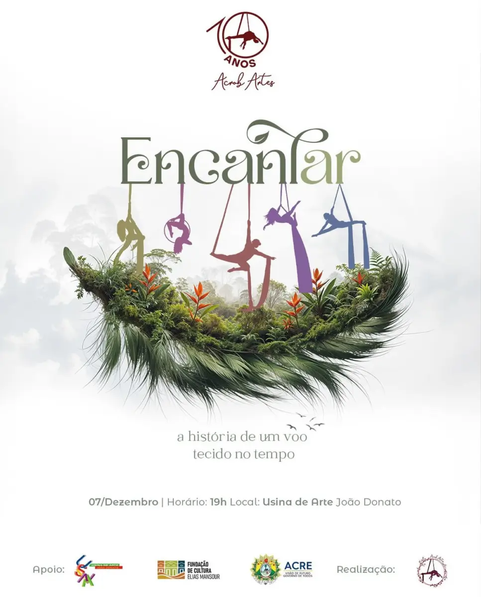 O grupo Acrobartes completa 10 anos e celebra sua trajetória com um espetáculo especial no próximo dia 7 de dezembro, às 19h, na Usina de Arte João Donato, em Rio Branco. A apresentação marca uma década dedicada à arte aérea, à amizade e ao vínculo profundo com a Amazônia — território onde o coletivo nasceu e cresceu.