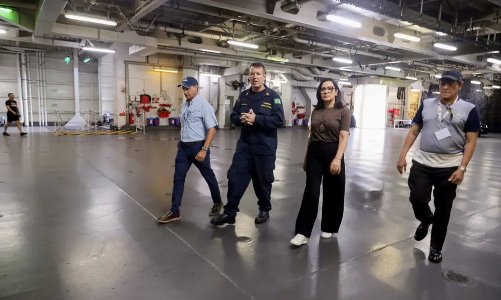 Em Belém para a COP30, a vice-governadora Mailza Assis visitou nesta segunda-feira, 17, o Navio-Aeródromo Multipropósito (NAM) Atlântico, considerado o maior navio de guerra da América Latina e uma das principais estruturas estratégicas da Marinha do Brasil. A embarcação está atracada em Belém desde setembro para reforçar ações de segurança, logística, monitoramento e apoio humanitário durante o evento climático global.