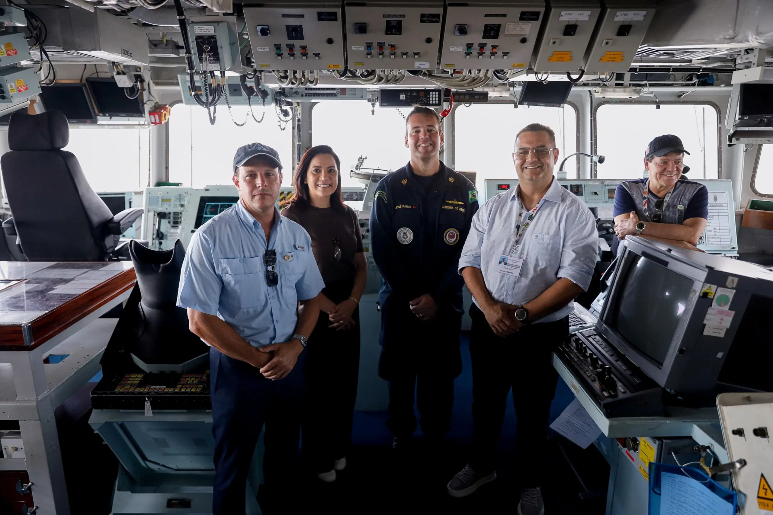 “É uma satisfação receber a senhora e apresentar o trabalho que realizamos. O navio veio do Rio de Janeiro, demorou 12 dias para fazer essa travessia, trazendo pessoal e material para reforçar essas posições de órgãos de segurança pública aqui. O NAM Atlântico é um conjunto de capacidades preparado tanto para defesa quanto para apoio humanitário. Estamos aqui integrados às ações da COP30, reforçando segurança, transporte, análise e resposta emergencial”, disse.