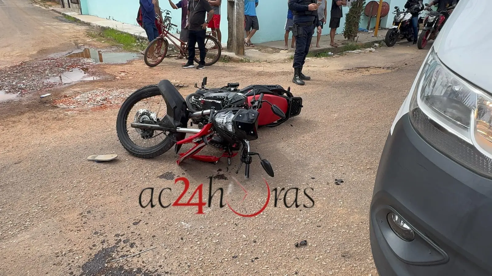 Cauã dos Santos Silva, 21 anos, sofreu ferimentos gravíssimos após uma colisão envolvendo sua motocicleta Honda Sahara e um veículo BYD Dolphin na tarde desta terça-feira (18), no cruzamento das ruas Bom Jesus e Benjamin Constant, no bairro Novo Calafate, em Rio Branco.
