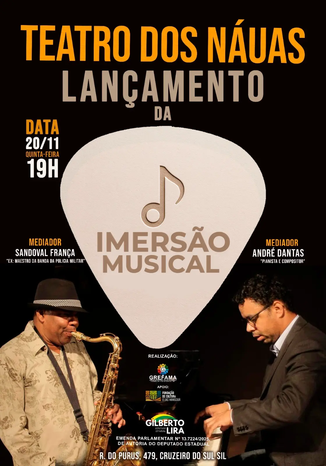 Começa nesta quinta-feira, 20, em Cruzeiro do Sul, o projeto Imersão Musical, coordenado pelo Grêmio Recreativo Frutos do Amanhã, com recursos de emenda parlamentar do deputado estadual Gilberto Lira.