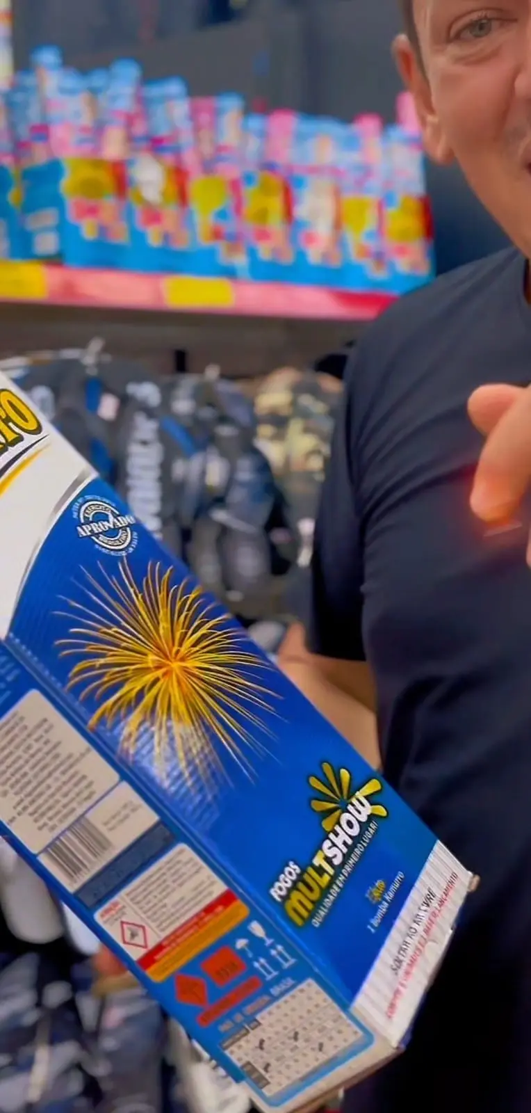 Ele enviou ao ac24horas um frame do vídeo do momento em que comprou os fogos, e na embalagem se lê um selo de “aprovado”.