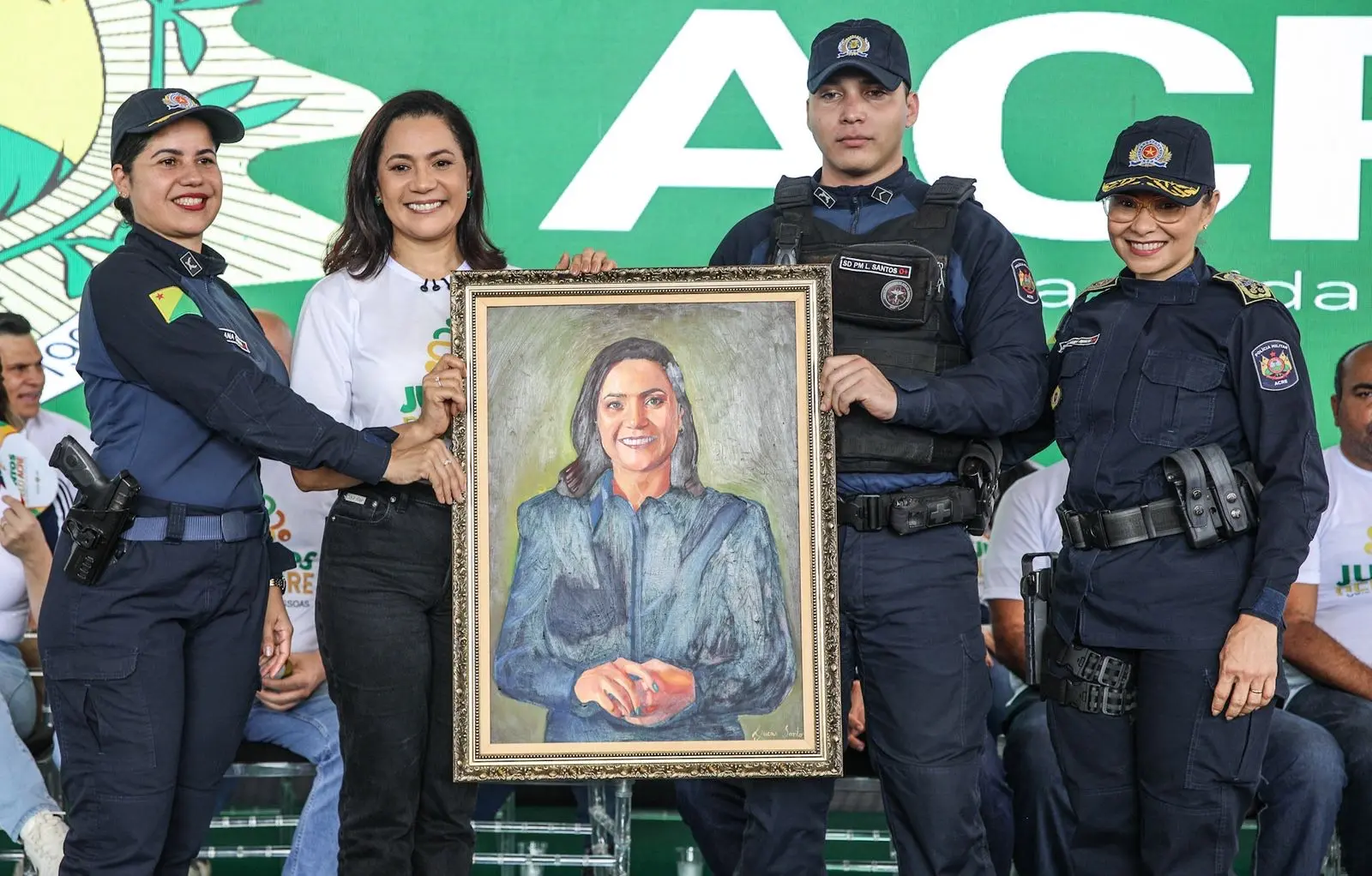 Durante a solenidade, Mailza Assis foi presenteada com um quadro pintado pelo soldado da Polícia Militar L. Santos. A comandante-geral da PMAC, coronel Marta Renata, destacou a parceria entre a PM e a SEASDH. “Essa parceria se reflete em benefício para a sociedade. Quando conseguimos plantar a semente da prevenção, isso chega à população de bem. Esse trabalho nas escolas, comércios e associações de bairro é o que constrói a nossa sociedade”, afirmou.