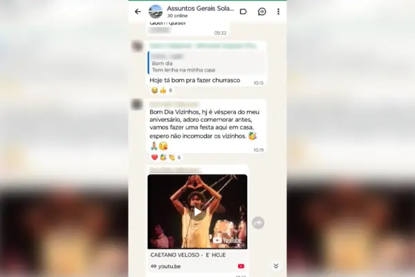 Um dos moradores publicou: “Bom dia. Tem lenha na minha casa”. Outro respondeu: “Hoje tá bom pra fazer churrasco”. Logo depois, um vizinho do ex-presidente emendou: “Hoje é véspera do meu aniversário. Adoro comemorar antes. Vamos fazer uma festa aqui em casa. Espero não incomodar os vizinhos”.