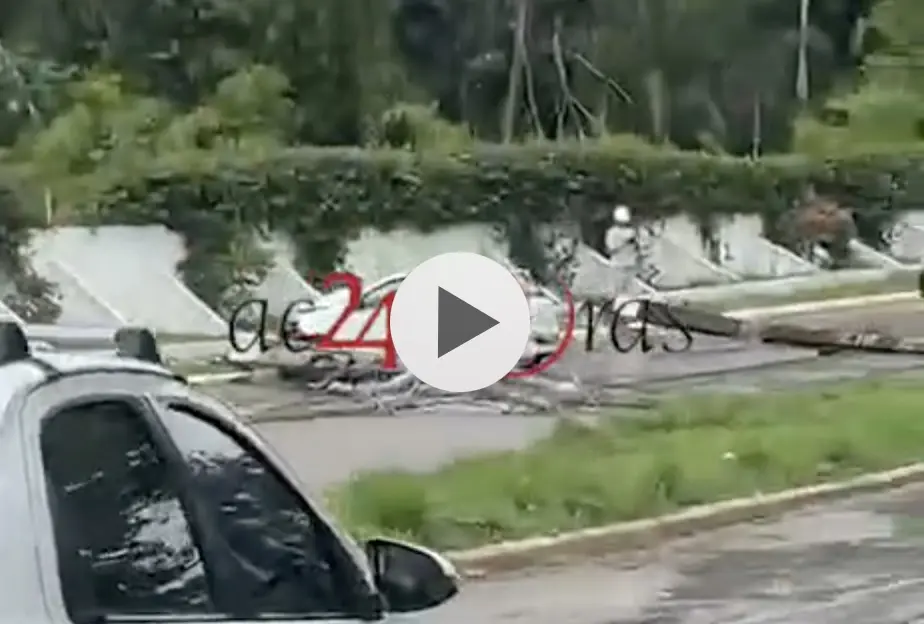 Estrada do Calafate é interditada após carro derrubar dois postes em Rio Branco