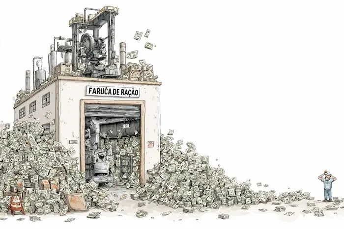 Em tempo: a Fábrica de Ração, enquanto estava operando com gigantesca ociosidade, produzia 460 toneladas por ano. Mas sabe quanto a estrutura tem capacidade, leitor? 61 mil toneladas por ano. Ou seja: pode mudar o nome para “fábrica de dinheiro”.