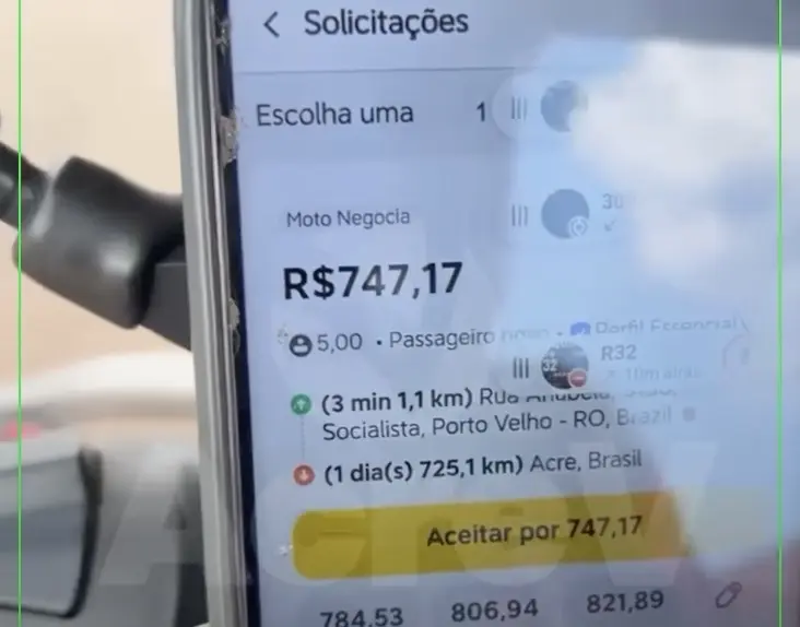 Um motoboy de Porto Velho (RO) ganhou destaque nas redes sociais após compartilhar um vídeo mostrando uma corrida inusitada recebida pelo aplicativo 99: um trajeto de 725 quilômetros até o Acre, avaliado em R$ 747,17.