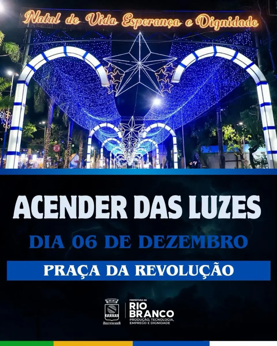 A Prefeitura de Rio Branco dará início à programação natalina no próximo dia 6 de dezembro, com uma noite especial marcada pelo acender das luzes de Natal na Praça da Revolução e pela tradicional Carreata do Papai Noel. A ação, realizada em parceria com a multinacional Coca-Cola, promete envolver a cidade em um clima de encanto, esperança e celebração.