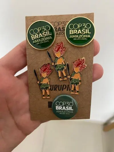 Durante a conferência, especialmente na Green Zone, longas filas se formaram para a retirada de lembranças oficiais. Agora, esses mesmos itens reaparecem como “souvenirs raros”. Entre os mais anunciados estão os pins dos países, a garrafinha temática — vendida por até R$ 200 — e itens usados por voluntários, como bolsas, chapéus e sapatos, com valores entre R$ 200 e R$ 300.