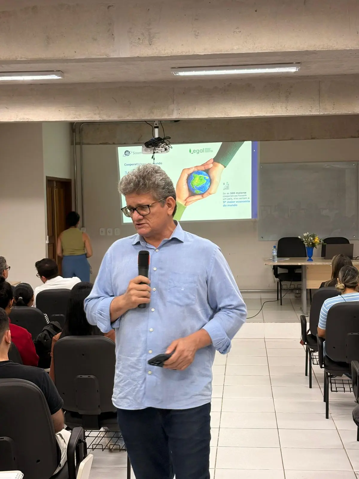 O presidente do Sistema OCB do Acre, Valdemiro Rocha, participou na quarta-feira (26) da *VI Semana Acadêmica de Ciências Econômicas da Universidade Federal do Acre (UFAC)*, apresentando aos estudantes e pesquisadores um panorama atualizado do cooperativismo no Acre, no Brasil e no mundo. A palestra integrou o bloco temático dedicado ao setor, realizado no auditório do Centro de Ciências Jurídicas e Sociais Aplicadas (CCJSA).