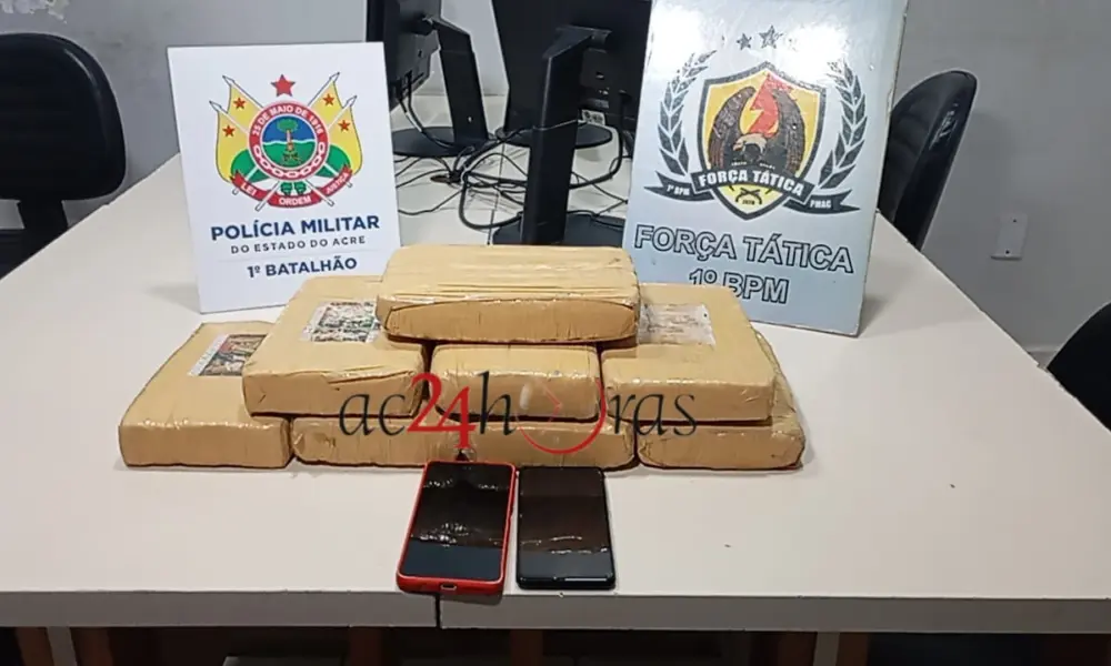 Uma ação dos policiais militares da Força Tática do 1° Batalhão resultou na prisão de Udson Fonseca da Silva, de 29 anos, na noite desta quinta-feira (27), no bairro João Eduardo 2, em Rio Branco. O suspeito foi abordado na Rua Santa Terezinha enquanto transportava oito tijolos de maconha, somando aproximadamente oito quilos, escondidos dentro de uma bag usada para entregas de lanches.