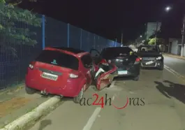 Um acidente de trânsito envolvendo três veículos deixou Gleice Maria de Almeida, 34 anos, presa às ferragens e ferida na noite desta sexta-feira (28), na