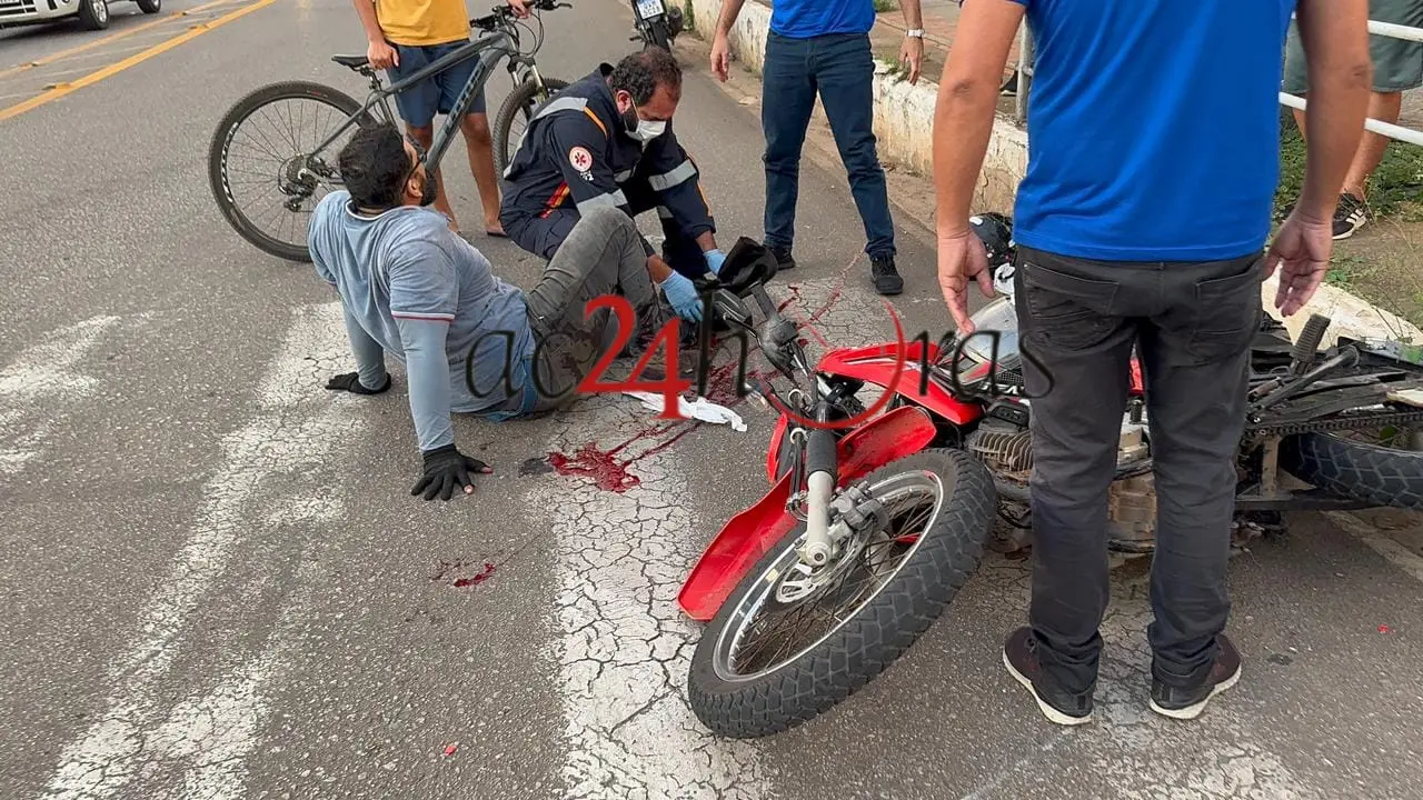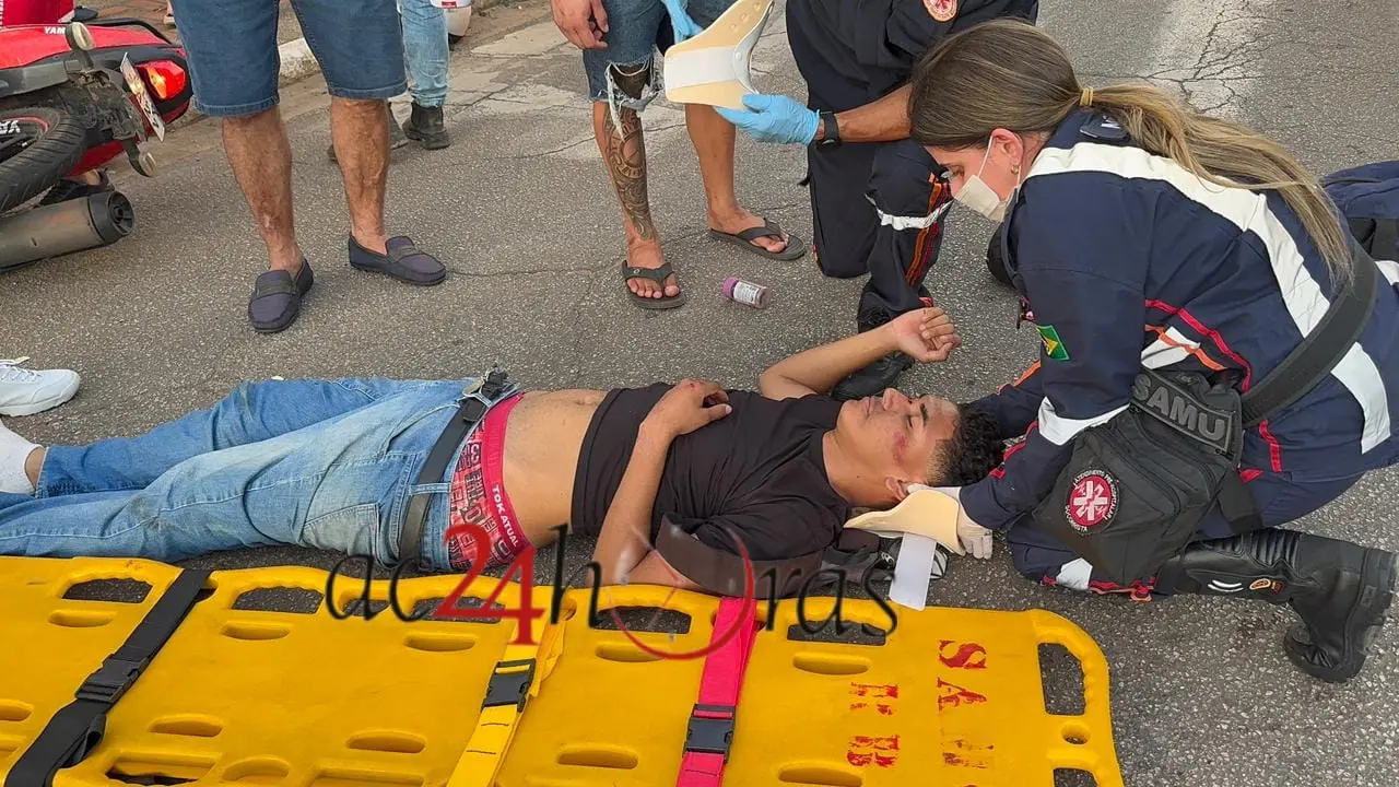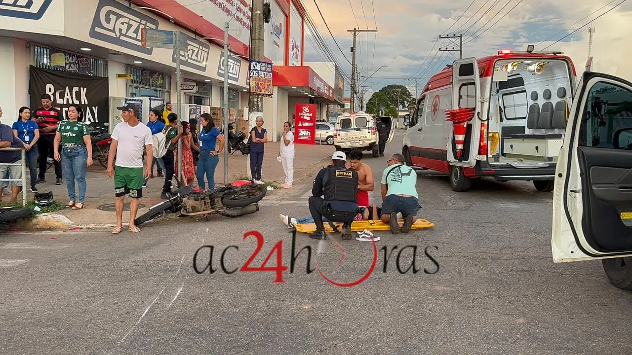 Uma colisão entre duas motocicletas deixou quatro pessoas feridas no final da tarde deste sábado (29), no cruzamento das ruas Nações Unidas e Pernambuco, no bairro Bosque, em Rio Branco. O acidente envolveu o motociclista de aplicativo Luiz Fernando Silva do Nascimento, de 33 anos, o adolescente de 13 anos que estava como passageiro, além dos jovens Gabriel Pereira Marques e Lucas Viriato Augustinho, ambos de 19 anos.
