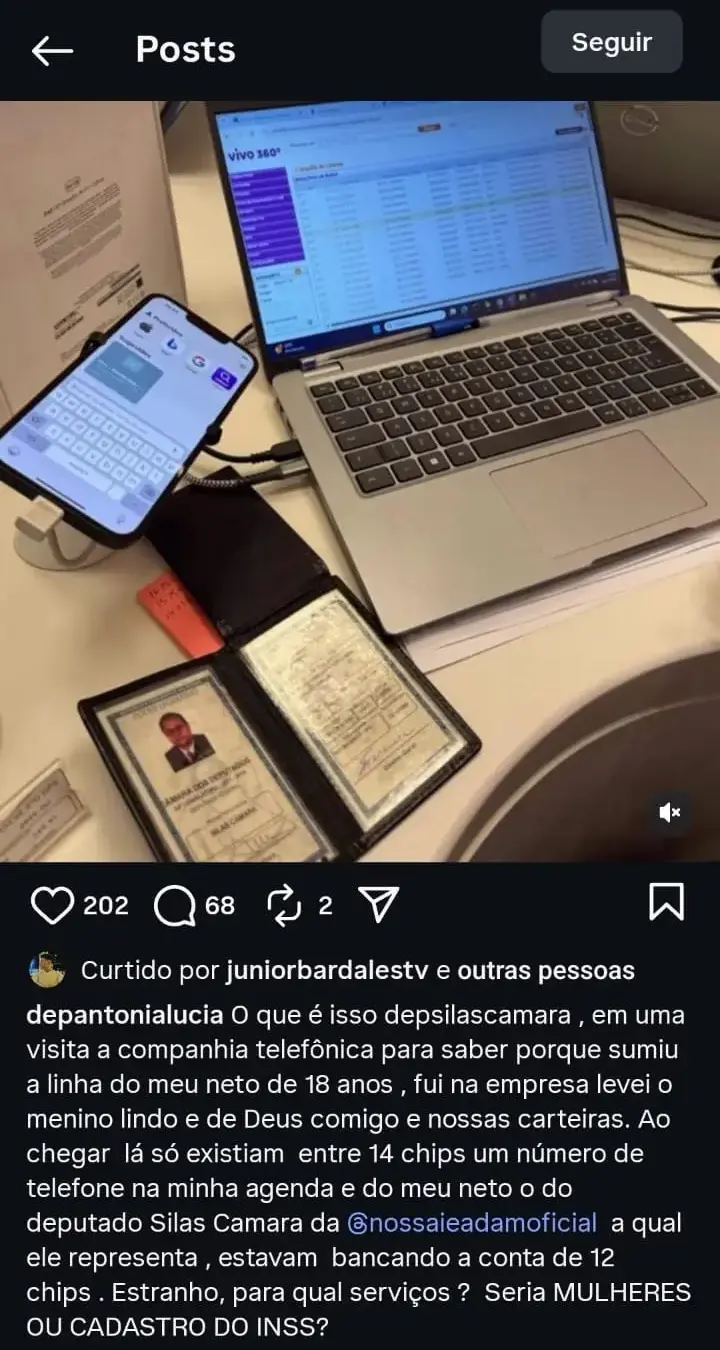 Na publicação, Antônia Lúcia questionou a finalidade das linhas supostamente mantidas pela instituição, afirmando: “Estavam bancando 12 chips. Estranho, para qual [sic] serviços? Seria mulheres ou cadastro do INSS?”, indagou.